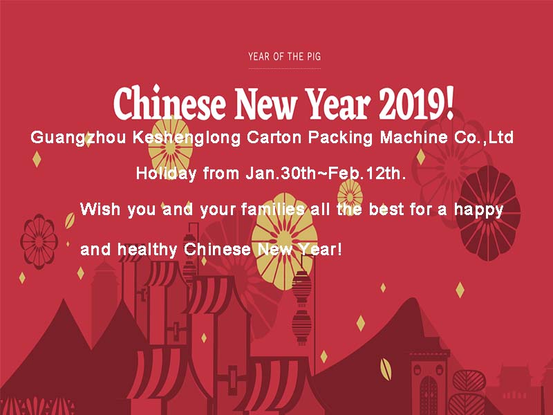GUANGZHOU KESHENGLONG CARTON PACKING MACHINE CO.,LTD. inform you that we will be out of office from Jan.30th to Feb.12th. And we warmly wish you and your families all the best for a happy and healthy Chinese New Year!